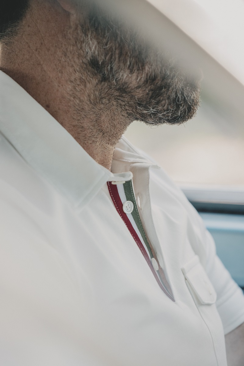 Thie white polo shirt "James" with its half button placket in regular fit gives you perfect wearing comfort thanks to 100% cotton. As a special detail, the characteristic Maxilite stripes in khaki, white and red along the half button placket, the sporty cuffs with a button as well as the breast pocket with a button give this polo shirt a touch of the charm we know from the racing legends of the 60s and 70s.