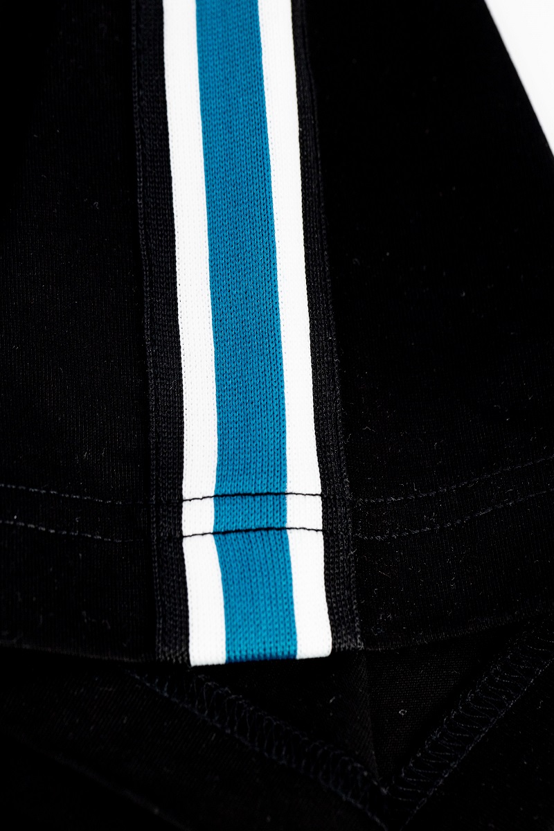 The sporty black T-shirt "Bruce" is cut to a regular fitting silhouette with crew-neck and gives you perfect comfort thanks to 100% high-quality cotton. As a special detail the blue-green and withe racing stripes along the sleeves give the shirt a touch of the charm we know from the racing legends of the 60s and 70s.